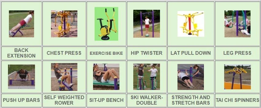 Soon the village dept of public works will be installing several pieces of equipment, as well as the removal of the old, dilapidated ones along the walking path. The actual equipment may differ from the photo provided