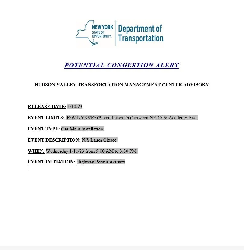 Plan to use Washington Ave & RT 17 or take Academy to Ballard Ave to RT 17.