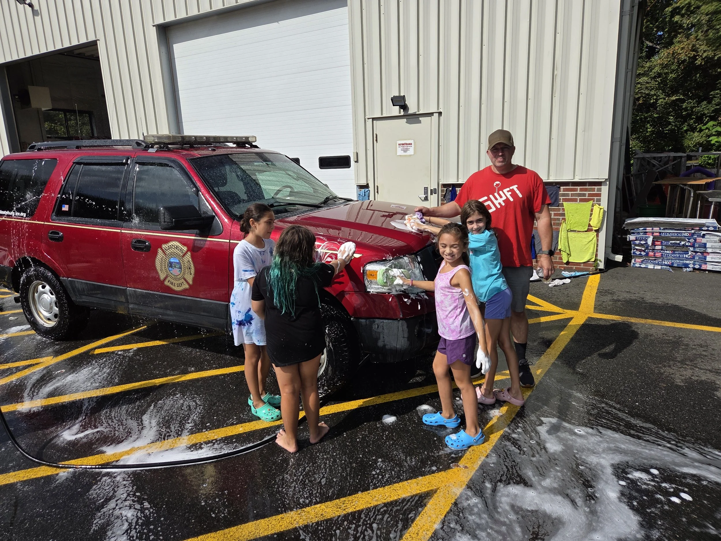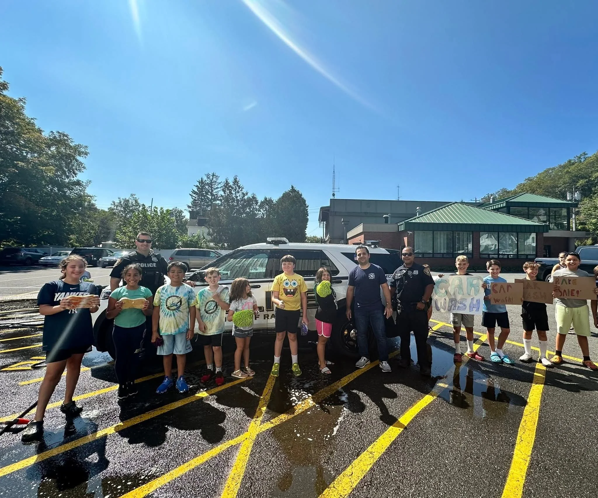 Then on Sunday, the Montebello 5th Grade class rolled up their sleeves for a car wash fundraiser to support their 5th grade activities. Trustee Bitterman was back again to lend a helping hand, while members of the Ramapo Police Department had their patrol car cleaned. Even the Sloatsburg Fire Department Chief stopped by to support the cause by getting his vehicle washed.