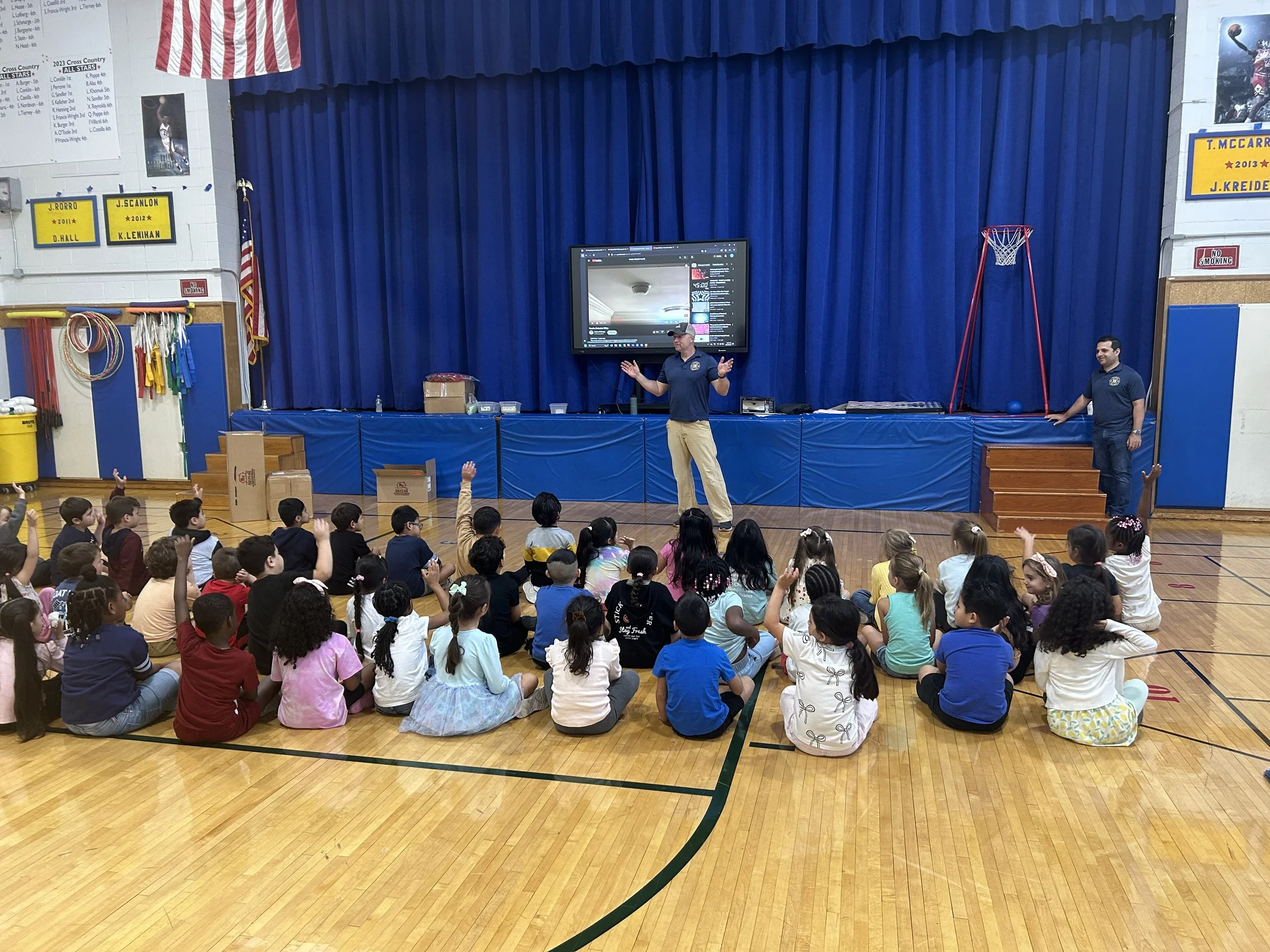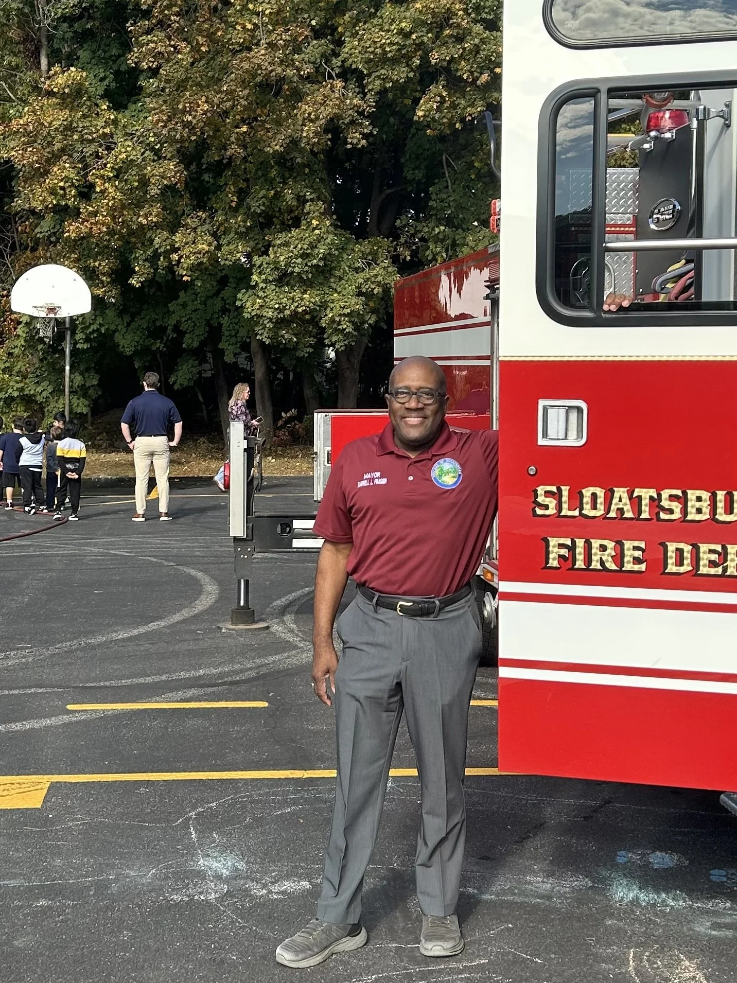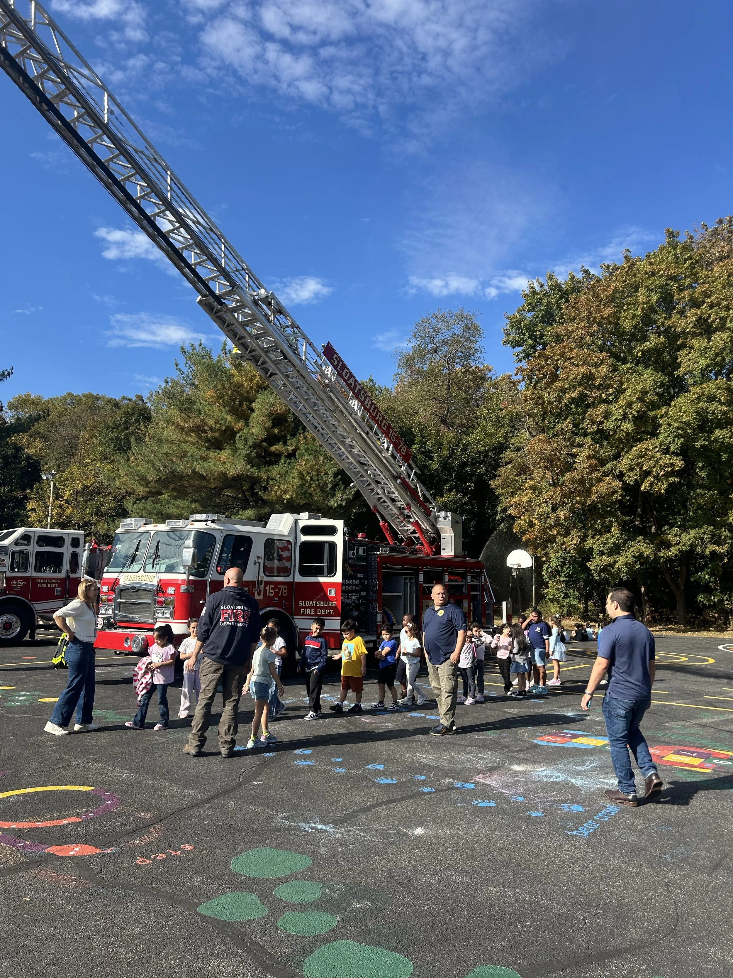 On Tuesday, October 7th, the Sloatsburg Fire Department visited Sloatsburg Elementary School for their annual Fire Prevention Assembly. During the visit, students engaged with firefighters to learn about the importance of knowing when—and when not—to call 9-1-1, as well as how to recognize the difference between a low battery beep and an actual smoke detector alarm. Students also had the exciting opportunity to get up close to the fire trucks and even try out a real firehose.