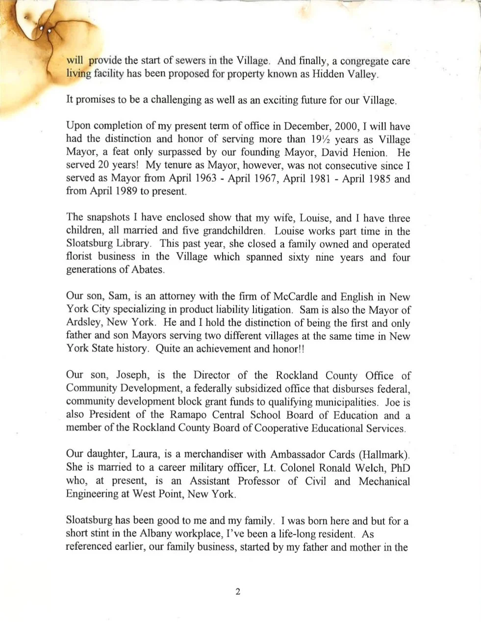 A devoted public servant and beloved member of the community, Harrison served as a Village Trustee, Village Historian, and a substitute teacher, roles in which he shared his deep knowledge, integrity, and warmth with generations of residents. His enduring commitment to Sloatsburg reflected not only his love for the village but also his proud heritage — as the great-great-grandson of Jacob Sloat, the founder of Sloatsburg.