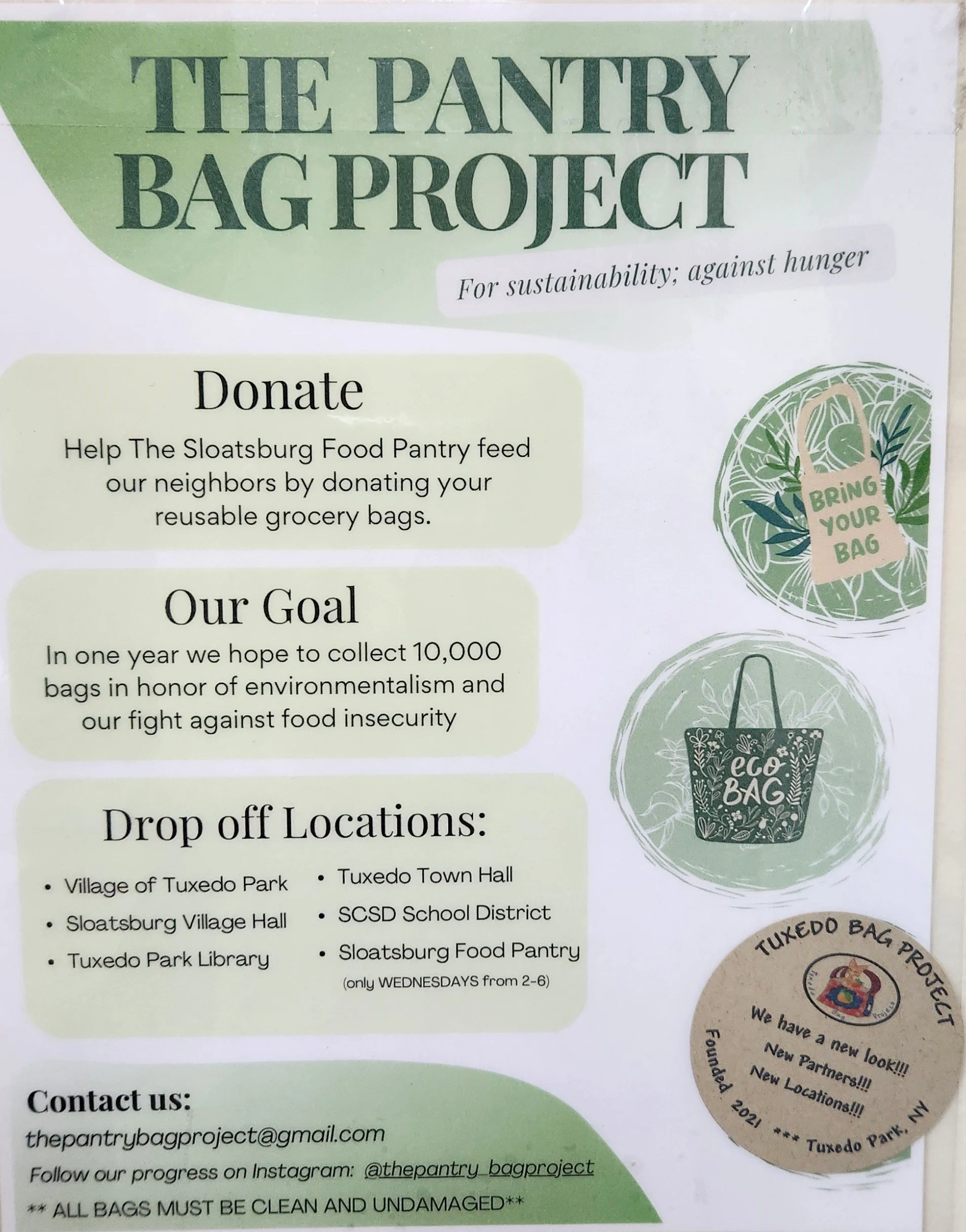 Sloatsburg Village Hall is one of many local drop off locations for The Pantry Bag Project. If you have clean, gently used reusable grocery bags to donate, please stop by during our regular business hours. Thank you again to Solomon & Maia both for your dedication to this project. It has made a meaningful impact in supporting our community.