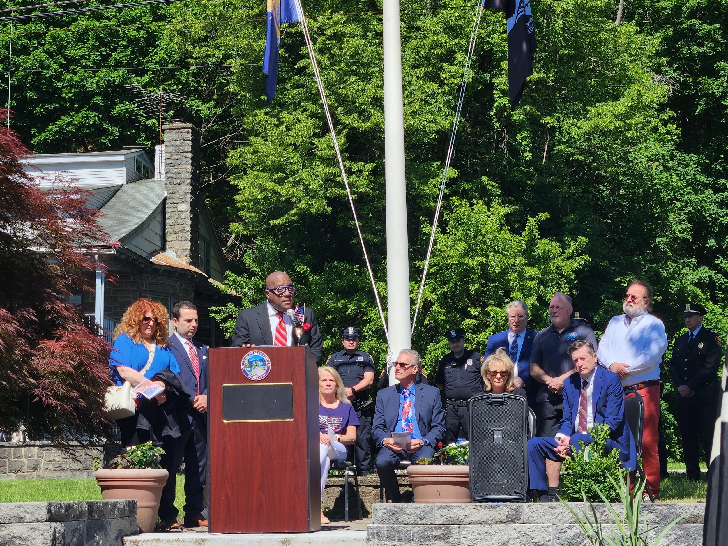 The Village would like to extend our heartfelt thanks to Assemblyman Karl Brabenec and Sloatsburg American Legion Post 1643 Commander Ryan Jagard for their powerful and moving speeches. We are also deeply grateful to Sloatsburg Fire Department Chaplain Douglas Volpicella for offering his thoughtful blessings during the ceremony.