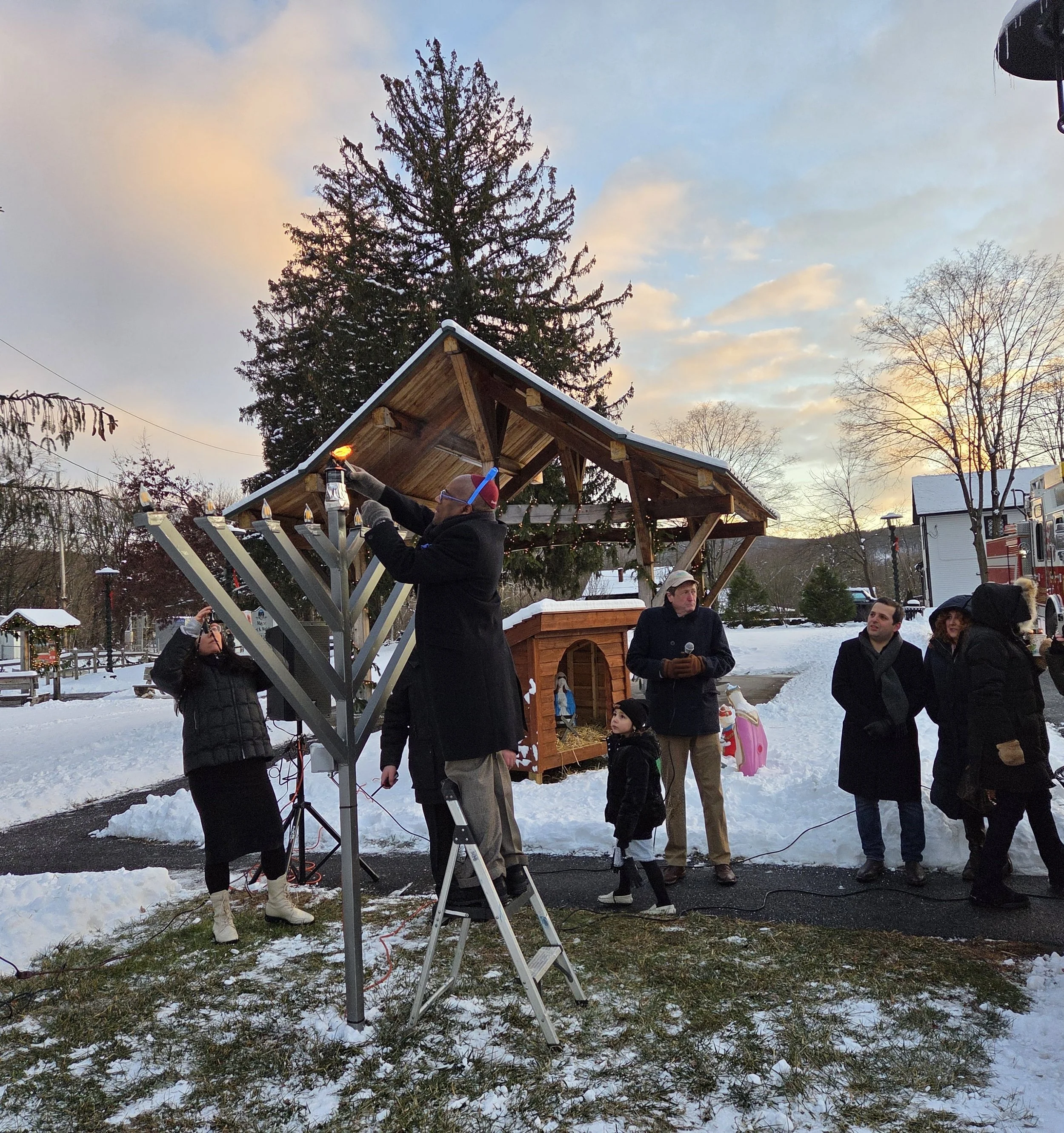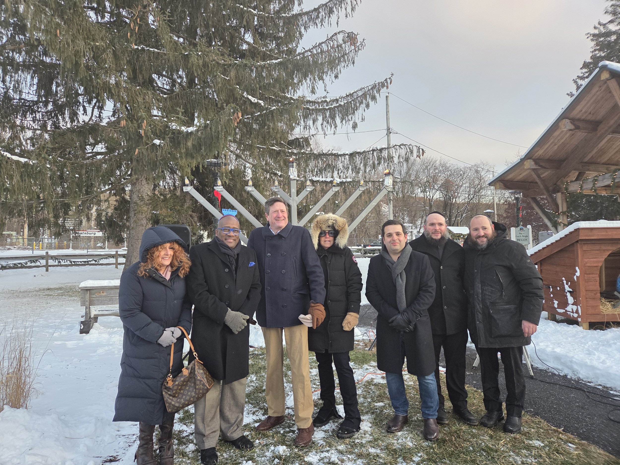 On Sunday, December 14, the Village of Sloatsburg came together to celebrate the first night of Hanukkah. Myself, Trustees Bitterman and McDonagh, Rabbi Gancz and members of the community all joined together to celebrate the festival of lights. Senator Bill Weber, Assemblyman Karl Brabenec, Town of Ramapo Supervisor Specht, Rockland County Clerk Silberman, The Village of Montebello Deputy Mayor Caridi and a representative from Rep. Mike Lawler's office all gathered at Mill Street Park with us for the lighting of the menorah, latkes and donuts provided by the Chabad of Suffern. The Sloatsburg Fire Department added to the festivities by tossing chocolate gelt to the crowd. We extend our sincere thanks to the Town of Ramapo Police Department and Spring Hill Community Ambulance Corps for providing additional coverage to ensure the safety of all in attendance.