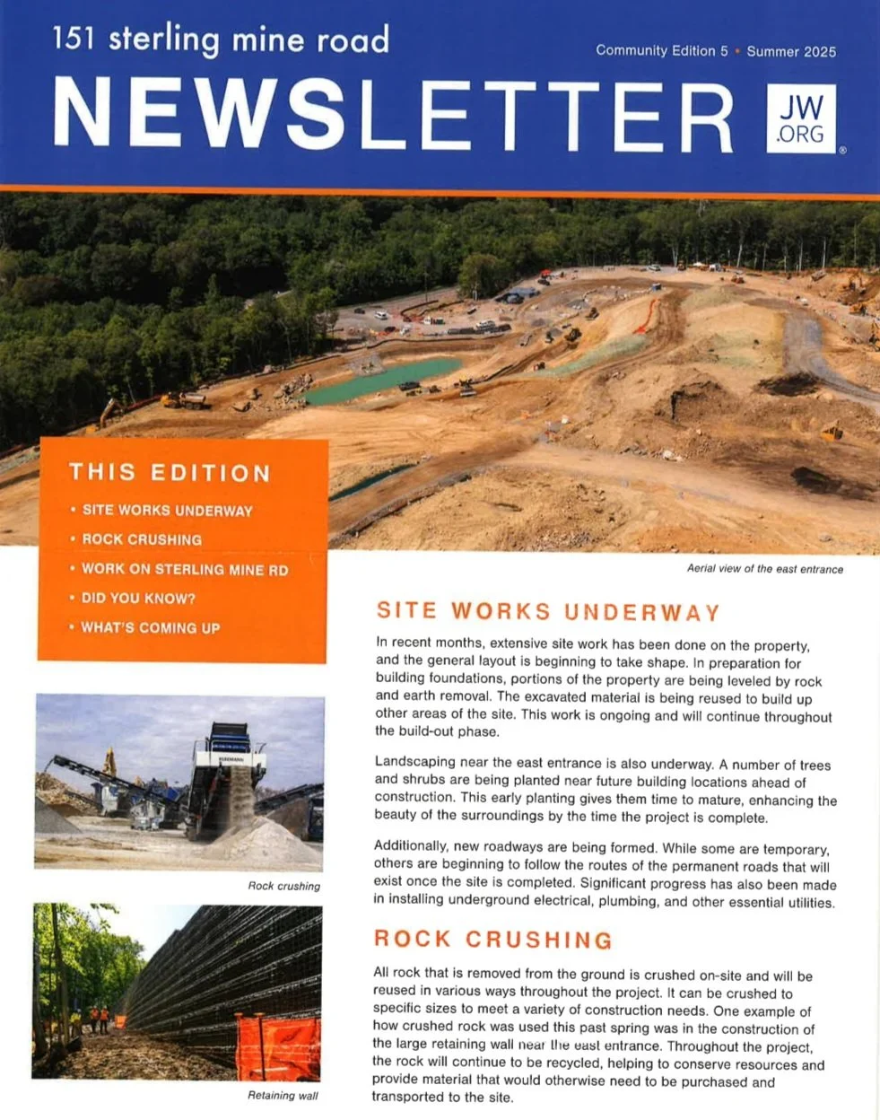 An update from Watchtower on the construction that began on Sterling Mine Road in April 2025.