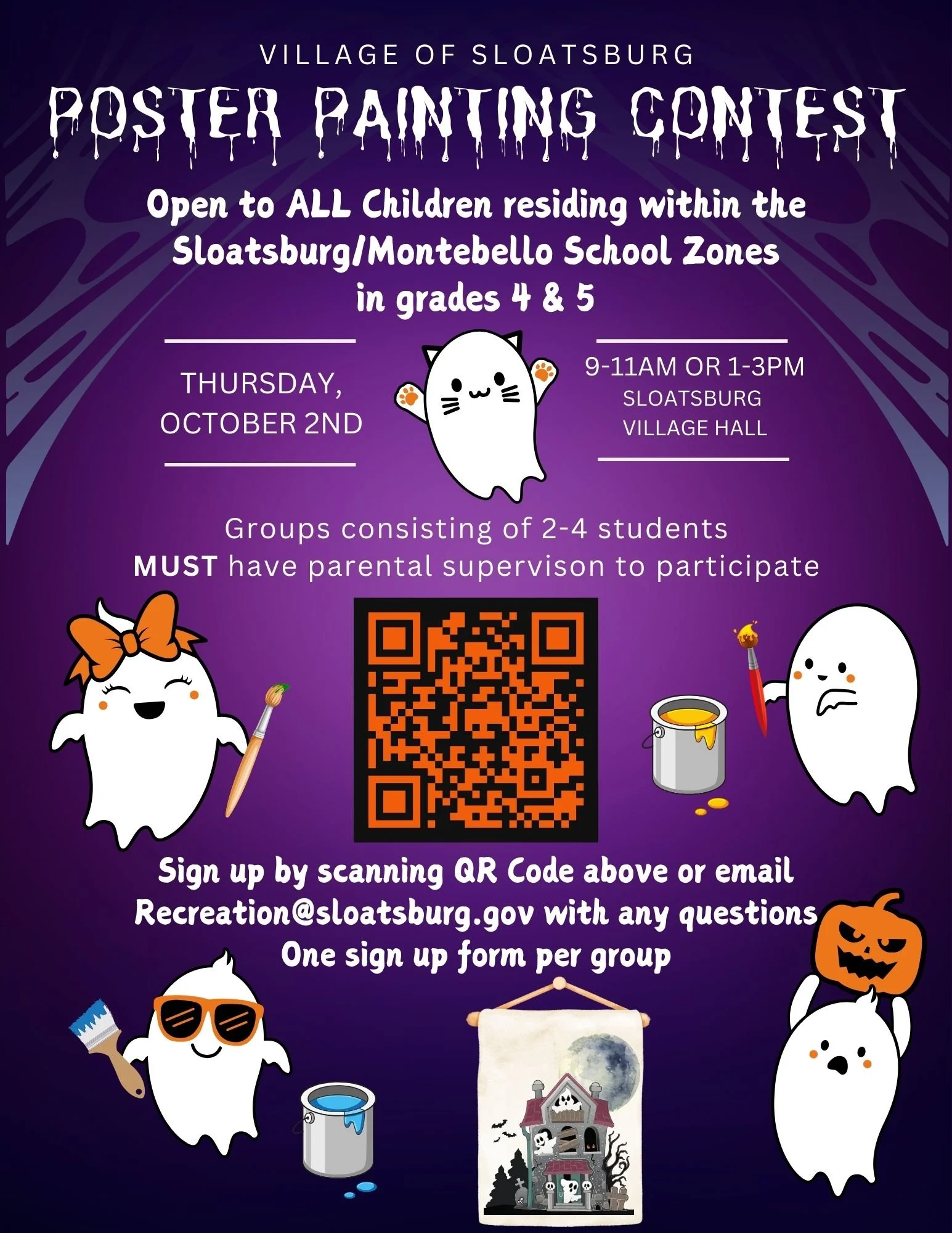 Our Halloween Poster Painting Contest is right around the corner and has a fresh new format this year. We now welcome ALL 4th & 5th grade students residing within the Sloatsburg and Montebello School Zones to participate!